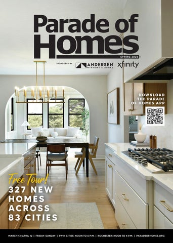 The 2026 Spring Parade of Homes Guidebook is an official publication of Housing First Minnesota and is distributed free of charge at Bachman’s, Galleria Edina, Circle K and Holiday Stationstores, Kowalski’s Markets, and via direct mail. Housing First Minnesota makes every effort to be accurate in the information provided. Neither the advertisers, nor Housing First Minnesota, will be responsible or liable for misinformation, misprints, typographical errors, etc., herein contained. No part of this publication may be reproduced without the written consent of Housing First Minnesota. Parade of Homes® is a registered trade and service mark of Housing First Minnesota. All builders must be licensed by the State of Minnesota. © Parade of Homes 2026 • ParadeofHomes.org