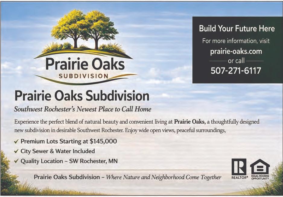 homes every year when we needed 1,000. In 2025, all three of the nation’s—and Minnesota’s—largest builders, began operations in Rochester. Our hope is within one to three years, we will be building 1,000 units of all types of housing each year. From apartments to multimillion dollar mansions, everything is being built here.”
