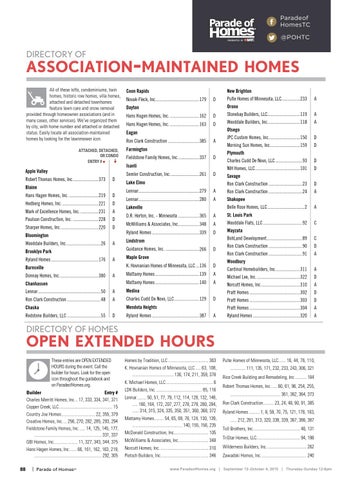 Apple Valley Robert Thomas Homes, Inc........................373 D Blaine Hans Hagen Homes, Inc............................219 D Hedberg Homes, Inc..................................221 D Mark of Excellence Homes, Inc..................231 A Paulson Construction, Inc.........................228 D Sharper Homes, Inc...................................220 D Bloomington Wooddale Builders, Inc................................26 A Brooklyn Park