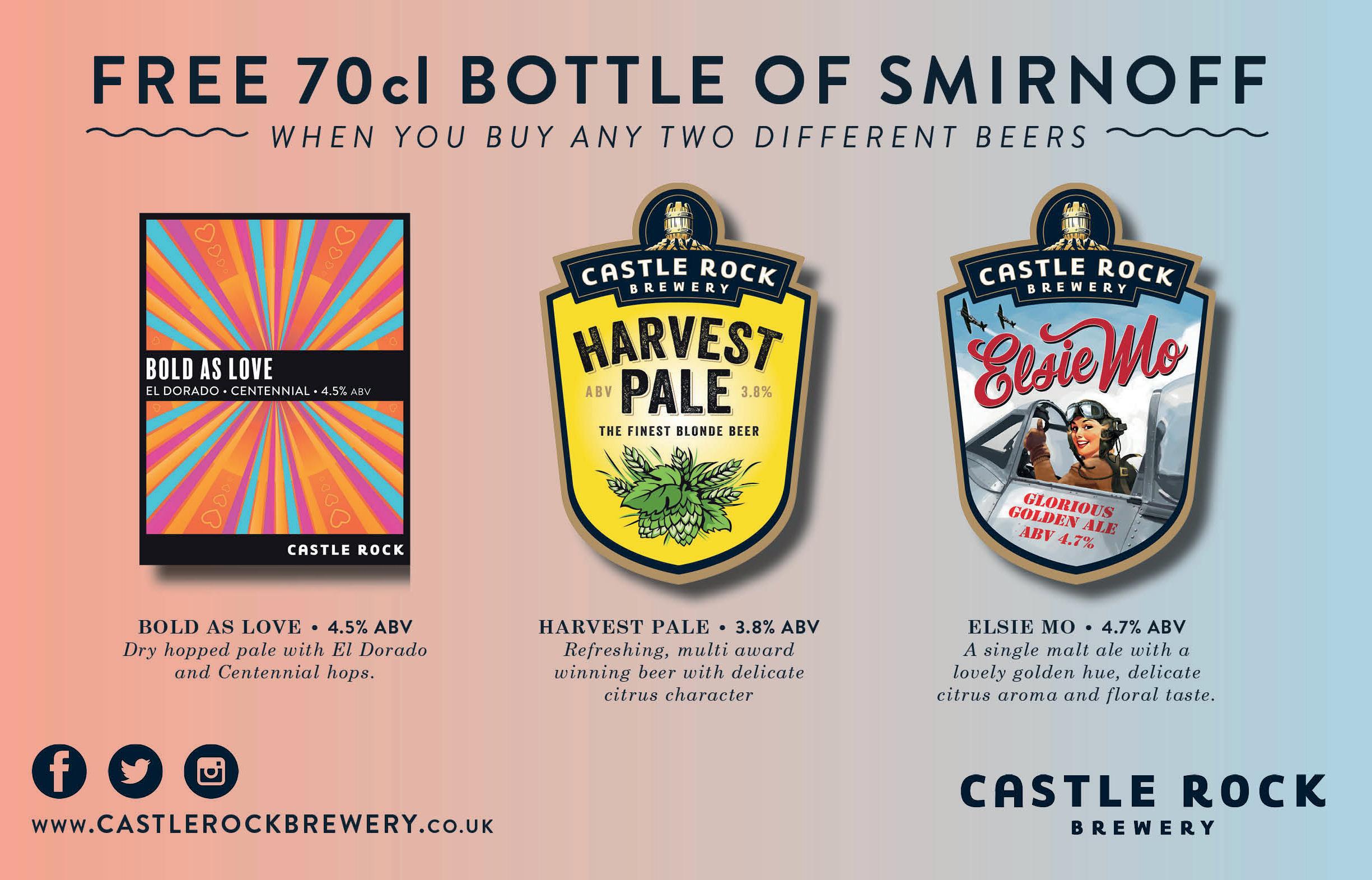 7 To Order Call: 01754 881137 BUY ANY 2x9G AND RECEIVE A 70CL BOTTLE OF SMIRNOFF FOC CRAFT BREW LEGENDS A.B.V. 3.8% Type Bi er Colour Light Gold Hop Mount Hood (USA) and Challenger (UK) Taste Light gold in colour and distinctively smooth, with citrus fruitiness and a refreshing hoppy finish. A cask ale legend! A.B.V. 4.0% Type Blonde Ale Colour Gold Hop Sterling, Amarillo, Centennial, Cascade and Chinook (all USA) Taste A blonde beer with a big personality, bursting with fruity hop flavours, citrus notes and a refreshing finish. A.B.V. 4.2% Type Session IPA Colour Gold A.B.V. 4.6% Type Golden Ale Colour Gold Hop Cascade (USA) and Challenger (UK) Taste A golden premium beer with a smooth, malty background, rich and fruity hop flavours and a refreshing finish. JEFFREY HUDSON BITTER INFERNO CITRA BISHOPS FAREWELL GREEN DEVIL IPA A.B.V. 6.0% Type IPA Colour Gold Hop Citra (USA) Taste Explodes with hop harvest aromas and packs big tropical and citrus hop flavours before a crisp, refreshing finish. Twice World Champion Cask Beer. CORE CORE CORE CASK AGED OAA22_Batemans_210x133_May22 | 20/05/22 | PDF/X-1a © 2008-2022 j6c22.arr info@jammz.co.uk BUY 2 x9G TO GET A FREE PROPER JOB GARDEN UMBRELLA