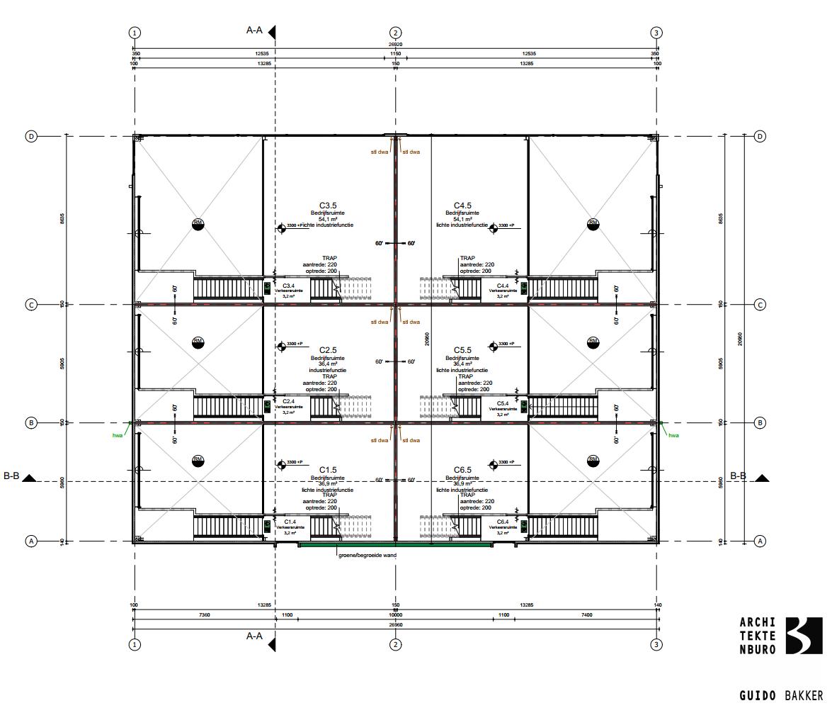 - Een maximale vrije hoogte van ca. 6 meter onder de 2e verdiepingsvloer;