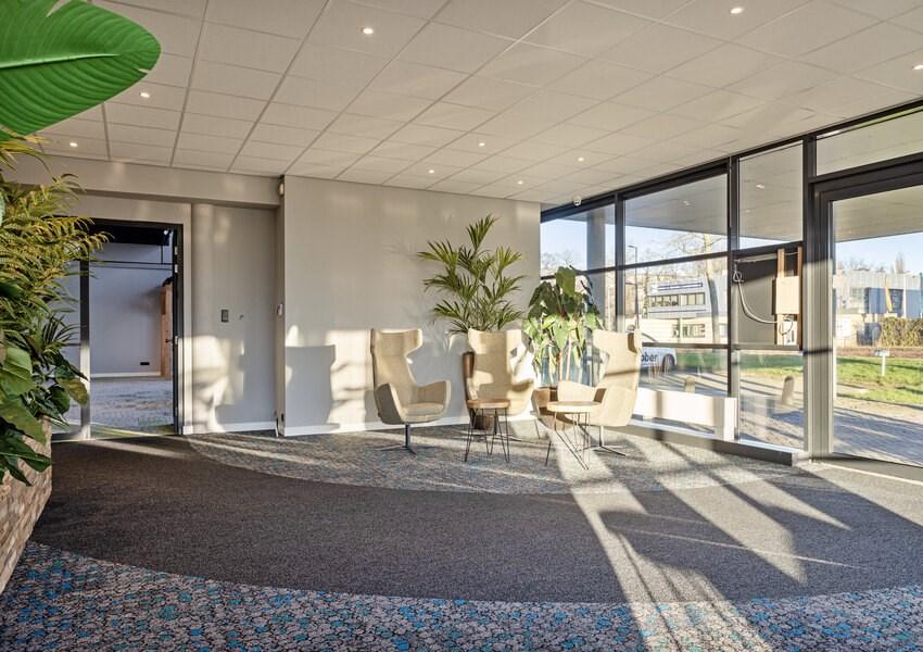 Aan de voorzijde van het object en de lange zijde aan de wegkant is kantoorruimte/showroomruimte gerealiseerd met een totale oppervlakte 1.567 m2 . De kantoren zijn volledig gemoderniseerd en zijn voorzien van alle hedendaagse voorzieningen, waarbij er rekening is gehouden met een hoog duurzaamheidsniveau door onder meer het gebruik van LED verlichting, warmtepompen en 500 PV-panelen op het dak.