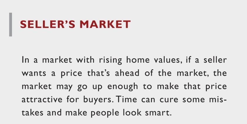 • To get your home sold for the most money in the least amountof time, we have to price it “in the market”.