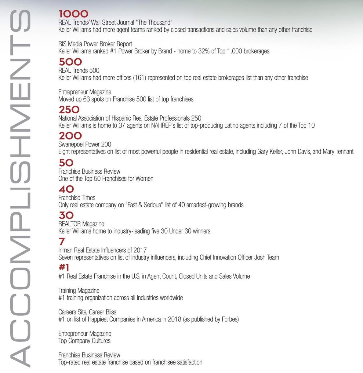 KELLER WILLIAMS AWARDS & HONORS