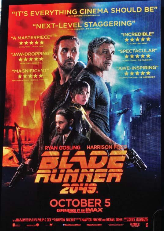 Th e fi lm moved along at a snail’s pace, which wouldn’t be an issue if the twists and turns were at all emotionally engaging or philosophically substantial. Instead 2049 opts for pretentious sound-bites like ‘you do not know what pain is yet, you will learn’ – wow, that sounds deep, very deep indeed. Ultimately, I’m not mad, I’m just disappointed. I love the original Blade Runner and 2049 pales by comparison. All I want to know now is this: What were the critics smoking when they saw 2049? And can I have some please? To be fair, some of the CGI eff ects were pretty cool – but that’s about it.