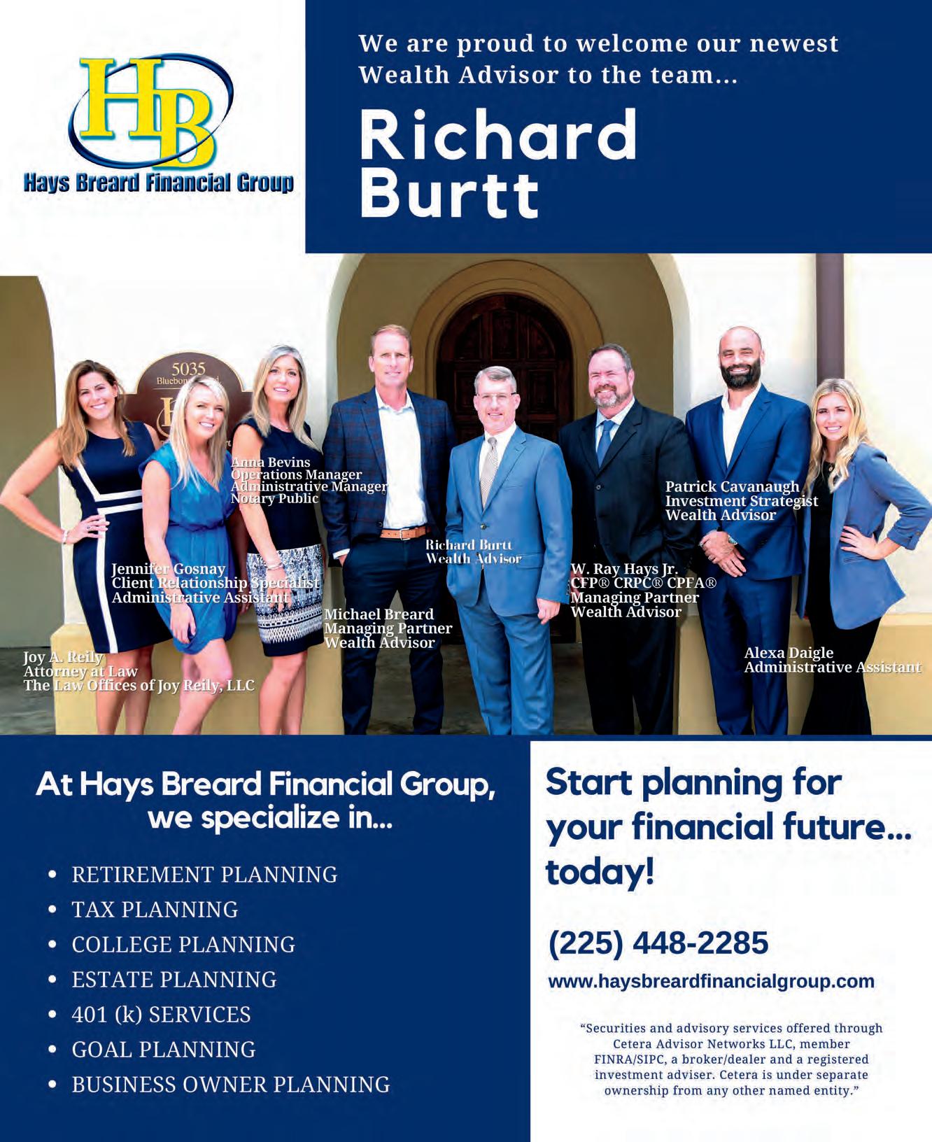 Sanford Roy, Baton Rouge’s Merrill Lynch wealth management financial adviser and senior vice president, was recently named to the Forbes Best-inState Wealth Advisor list. Roy has been a wealth management ad viser with Merrill Lynch since 1998 and holds the certified in vestment management analyst certification, having completed his coursework at The Wharton School of the University of Pennsylvania. He serves wealthy individuals and families, business owners and nonprofits.