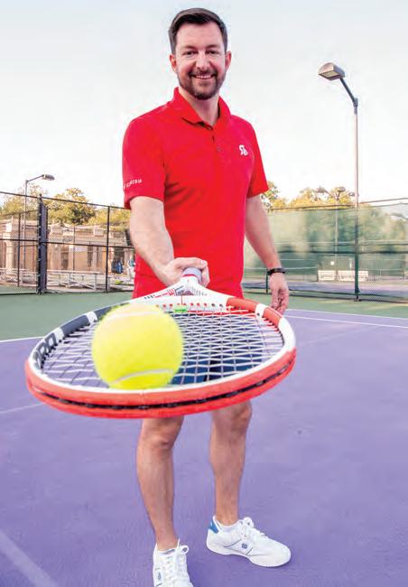 “Tennis is a dynamic, fast-paced sport that takes strategy and focus. The physical and mental exercise paired with the friendly competition helps me unwind, and smashing that little fuzzy yellow ball around is great stress relief.”
