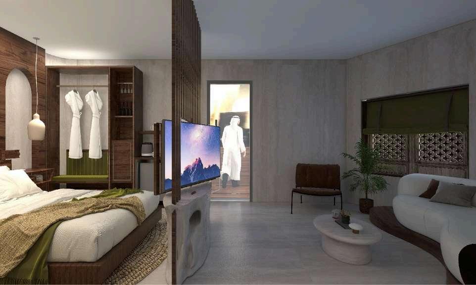 Visit Darana to discover the nutritious essence of Ajwa dates and the transformational power of storytelling. this hotel has a specially designed storytelling area and experiences, urge visitors to relax and let themselves be captivated by stories of tradition, fortitude, and wisdom. Guests savortherichnessofAjwadatesas the stories are told, their tastes and textures blending with the stories to create a memorable sensory experience. the concepts chosenforthisdesignaretheAjwa Dates and storytelling, it is a tangible and philosophical concept, it will be applied in the walls, oors, ceilings,furniture,andinthefeeling ofthespace.