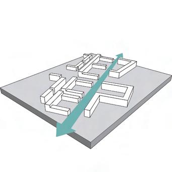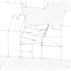 Angling the sections to create connection to the two existing buildings, like the threads in the concept box