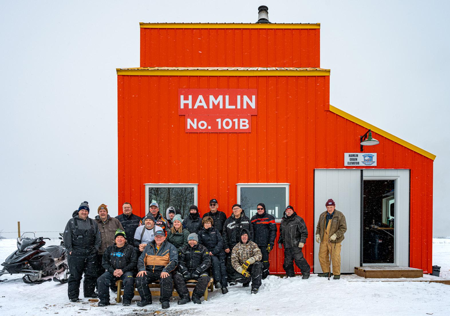 The Hamlin Grain Elevator Shelter is located north of the Battlefords, off Trail 101-B.