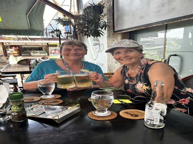 My traveling friend Eleanor from Yorkton Sask. (left-hand side) Who also winters in Yuma, Arizona. A hot muggy shopping day in which we decided to patronize a classy restaurant. The USA price for a Pilsner can of beer $5.00 and converted to Canadian
