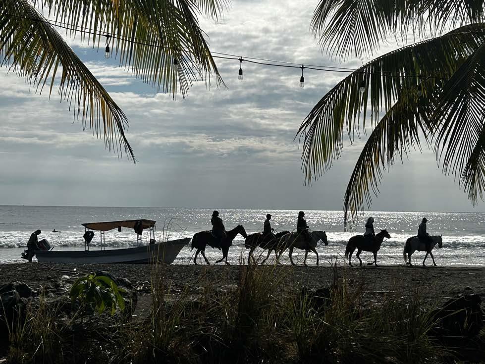 Tourists horseback riding on a Costa Rican beach, a common sight.. | Photos by Elaine Woloshyn