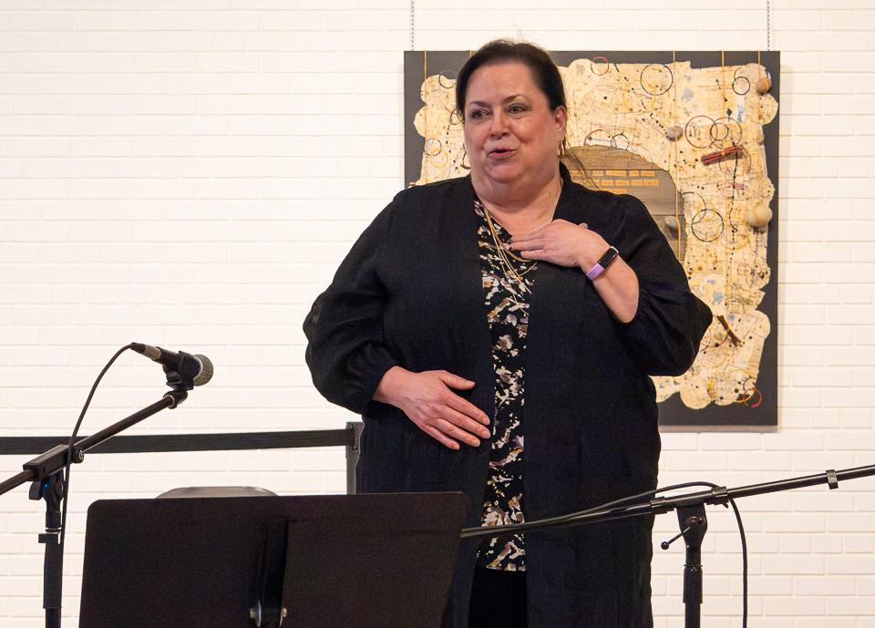 Mayor Kelli Hawtin speaks at the podium during the 2025 State of the City Address, outlining plans to attract businesses, expand the tax base, and strengthen community partnerships. | Photo by Matthias J. Johnson