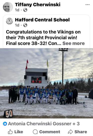 Last month, Lorna and Russell Buziak of Whitkow enjoyed the tour of their granddaughter’s college in New York State. Madison, daughter of Jeremy and Tanya Buziak (Saskatoon), plays female hockey for the Rochester Institute of Technology team in Rochester. They got to watch a few games and toured the U.S. side of Niagara Falls. Buziaks are in every direction as all 10 of their grandchildren have played and the younger ones are still in this exciting sport. Their three sons were also engaged in hockey a few decades ago.