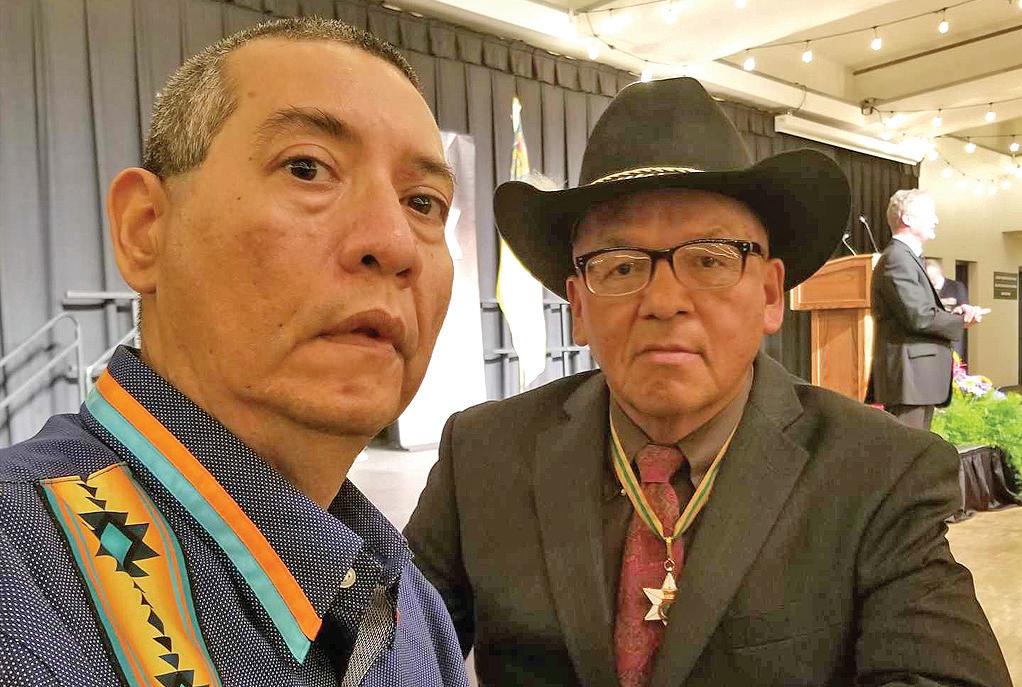 Floyd Favel, right, shared his prestigious moment with Richard Mirasty, former Chief of Flying Dust First Nation and direct descendant of Chief Poundmaker. |