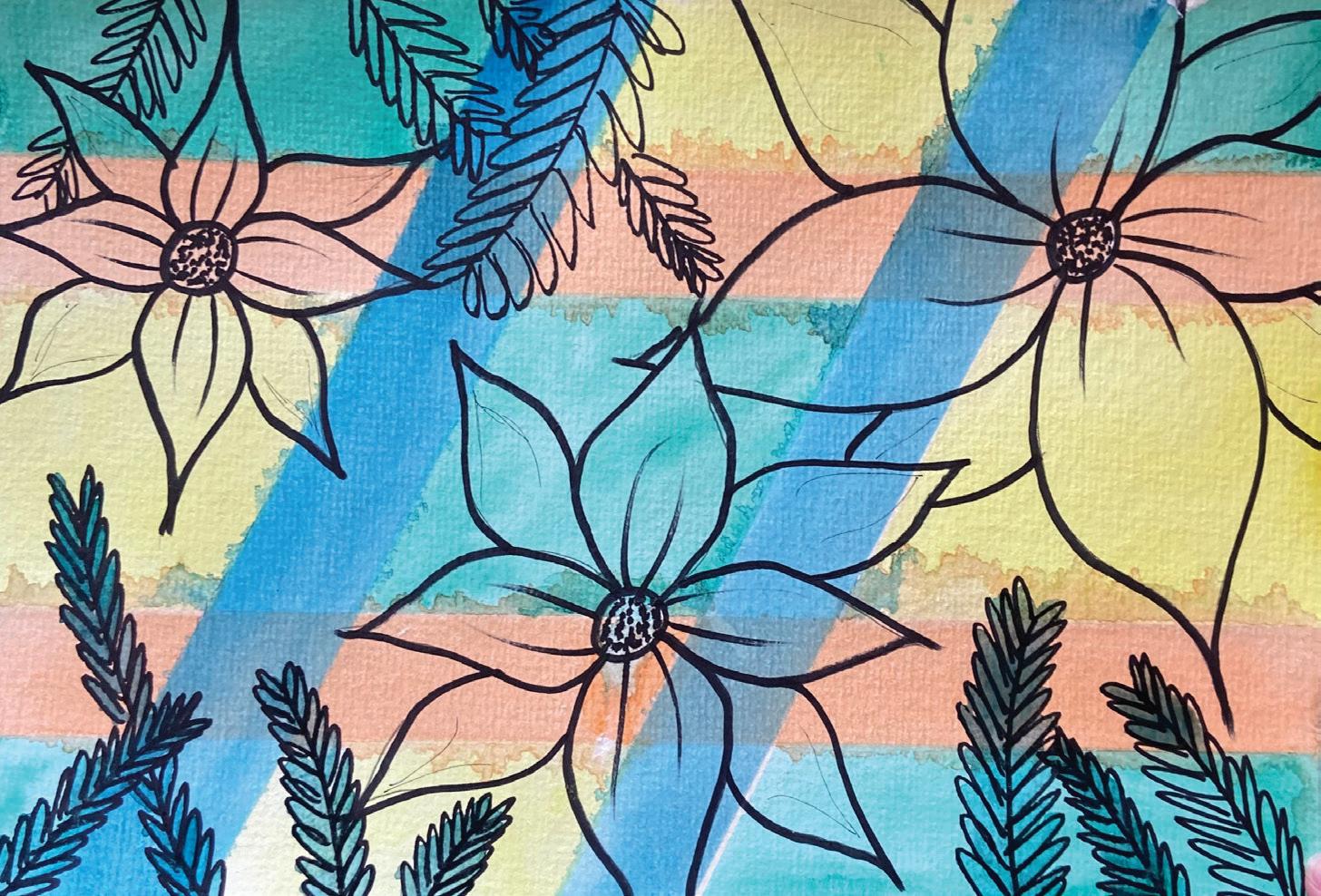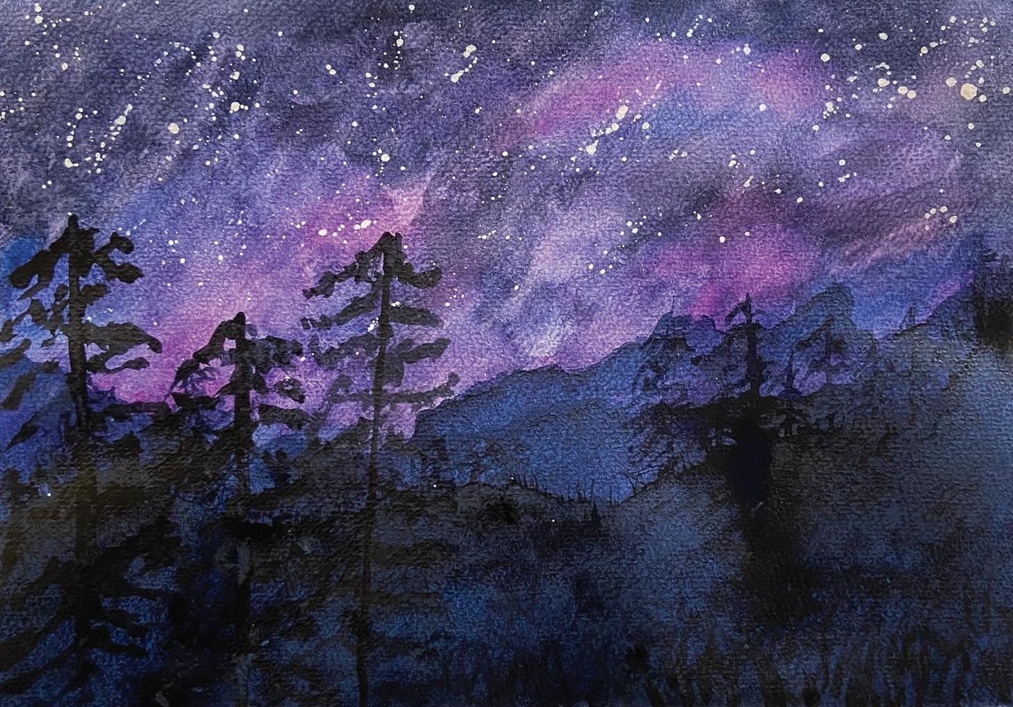 wet-on-wet and wet-on-dry to see how it changes my paintings. Sometimes I just paint to see what colours mix well, what new colours I can make or how colours layer upon each other to create depth and movement. I watch videos and go to the Battlefords Art Club to see the techniques and ideas other artists use and then I “play” some more to see what I can do with these new ideas. The outcome isn’t always pretty but the learning that has come with it is so important. I am constantly changing and growing as an artist all because I “play”.