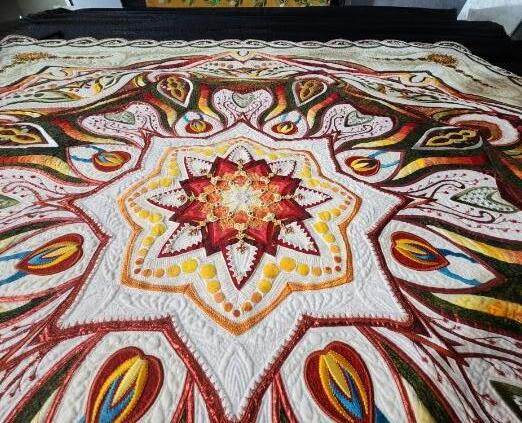 Eunice Ketchemonia-Cote, who creates unique ribbon skirts and star blankets says social media can be a double-edge sword for home-based artists like herself.