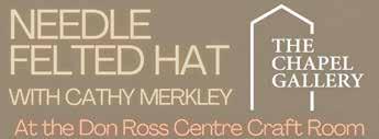 Create your very own hat in this workshop! Cathy Merkley will lead and teach a technique known as “fusion felting”. PRE-REGISTRATION IS REQUIRED BY MAY 24TH. LOCATED AT THE DON ROSS CENTRE CRAFT ROOM (DOOR #2. DOWNSTAIRS) AT 891-99TH ST. NORTH BATTLEFORD, SASK. FOR MORE INFORMATION OR TO REGISTER CALL (306) 445-1760 OR EMAIL GALLERIESOFNB@CITYOFNB.CA OR REGISTER ONLINE AT HTTPS://WWW.CITYOFNB.CA/PARKSRECREATION-CULTURE/