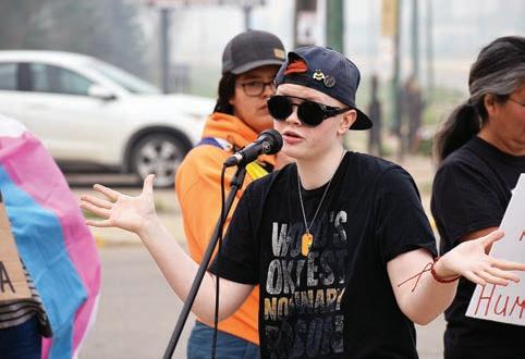 A non-binary protester shares their experiences coming out of the closet in North Battleford on Sunday, Sept. 3 in front of Minister Jermey Cockrill’s office.