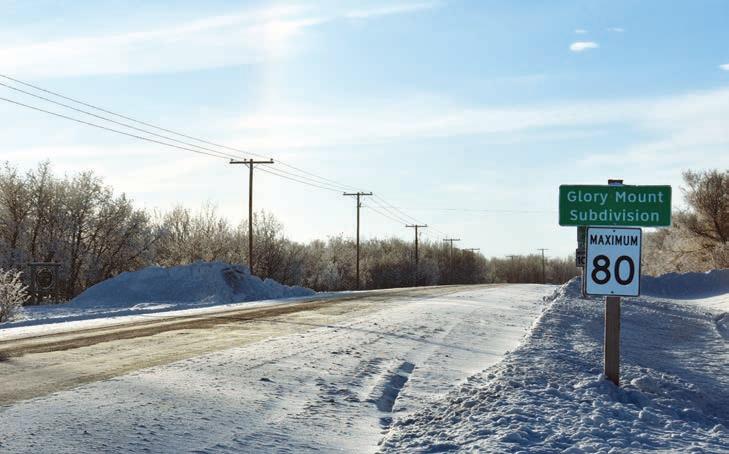 The sign that signals the start of the Glory Mount subdivision south of Battleford. | Photo by Miguel Fenrich