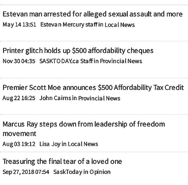 These three stories were number one, two and four, respectively. The announcement that cheques were coming was made by Premier Scott Moe in August, leaving the public constantly curious as to when they could be expected.