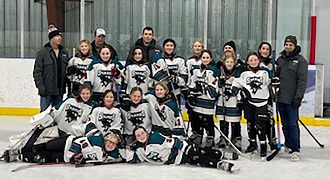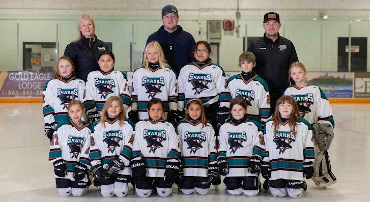 Back Row: L-R Brent Salz (Head Coach), Maddie Larre, Chris Browne (Assist. Coach), Katie Browne, Cullen Blacklock, Justin Blacklock (Head Coach), Emili Loiselle, Danika Salzl, Kamryn Russett, Amy Hoiseth (Assist Coach), Addison Meena (AP), Mila Lapointe, Eva Haase, Ryan Haase (Assist Coach)