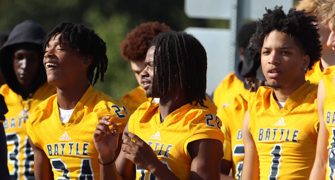 Battle football played SmithCotton on October 4 for Battle’s Homecoming game. Both teams went into this matchup looking for their first win of the season. Smith-Cotton scored first with a touchdown and extra point at the end of the first quarter taking the lead over the Spartans 7-0. Battle came out fast on their next offensive drive. Senior running back Chris Brown broke free for a 29yard rushing play. The Battle offense stayed hot when freshman quarterback Blayne Jungmann aired out a 17-yard touchdown pass to junior wide receiver Caden Lewis, but Battle could not tie the game with an extra point, so Smith-Cotton still led Battle 7-6. Smith-Cotton would later extend their lead to 10-6 with a field goal. Battle would take the lead in the third quarter with a 1-yard touchdown run from senior running back Chris Brown, and junior kicker Brady Crites made the extra point to make the score 13-10 Battle.