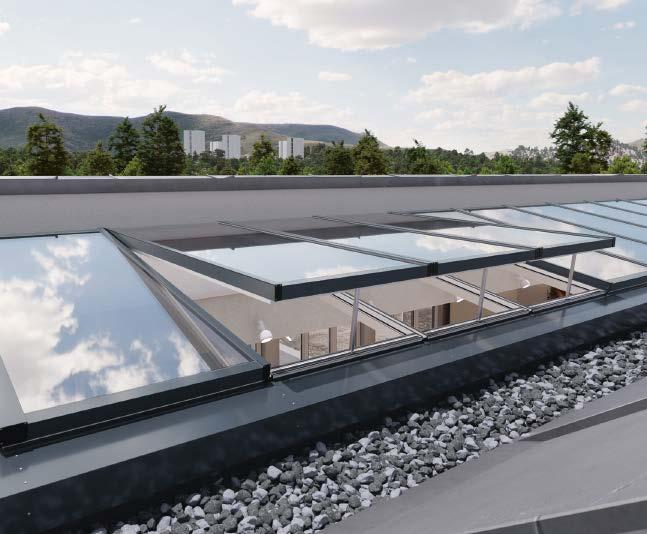 Mit seinen Modular Rooflights bringt Velux Commercial ein neues Produkt auf den deutschen Markt, das Maßstäbe hinsichtlich Design und Funktionalität setzt. Die Oberlichtlösung sorgt für eine besonders hohe Lichtausbeute, da die Innenlichte der Dachöffnung entspricht. Modular Rooflights sind sowohl als einzelnes Monolight Flachglaselement wie auch als Linearlight Lichtband einsetzbar. Die Produktgröße beider Gestaltungsvarianten ist millimetergenau konfigurierbar und bietet Architekt:innen und Planer:innen viel Gestaltungsspielraum.