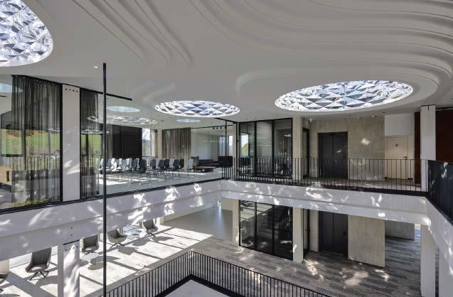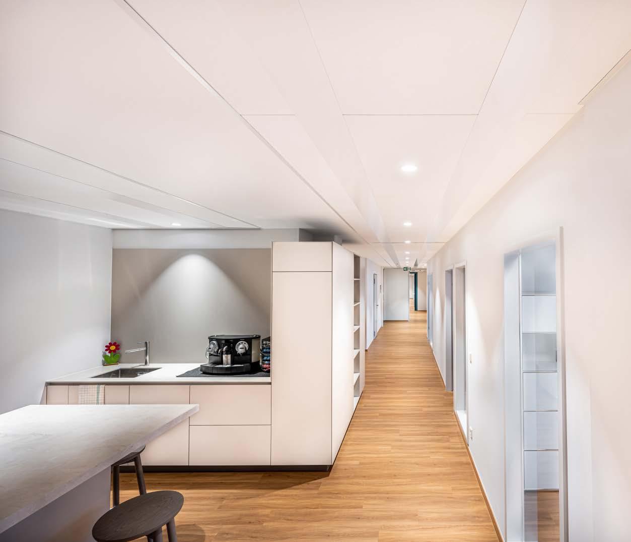 Die Klimadecke PareauLux ist in drei Ausführungen erhältlich: PareauLux-30BD besteht aus gewalztem Aluminium mit Beschichtung, PareauLux-Heartfelt® mit modularen, linearen Filzpaneelen aus thermogeformten PES-Vliesfasern und PareauLuxMassivholzraster aus MDF-Massivholz. Sie können an spezifische Bedürfnisse und Optiken nach Kundenwunsch angepasst werden und sind in unterschiedlichen Farben und Paneelgrößen verfügbar. Bei Klimadecken wird kaltes oder warmes Wasser über Klimaelemente der Decke zugeführt, je nachdem, ob der Raum gekühlt oder geheizt werden soll. Bei den PareauLux-Klimadecken wird diese bekannte Technik auch verwendet. Die hohe Kühlleistung des von Inteco entwickelten PareauLux-Klimasystems erreicht wesentlich höhere Werte als eine Standardklimadecke. Das bedeutet, dass weniger Deckenfläche für die Kühlung benötigt wird. Auch die Akustikeigenschaften lohnen einen genaueren Blick. So liegen die Absorptionswerte (aw) einer PareauLux Heartfelt®-Klimadecke zwischen 0,45 (Modul 100) und 0,70 (Modul 50). Für einen höheren Absorptionsgrad (ca. 0,95) kann auch eine Mineralwolldämmung mit schwarzer PE-Folie über dem Klimaelement angebracht werden. Das funktioniert ebenfalls bei den PareauLux-Holzrasterdecken. Die PareauLux-30BD Deckenpaneele können mit einer schallabsorbierenden Membran perforiert werden, was die Raumakustik ebenfalls deutlich verbessert. Sowohl HeartFelt® als auch das 30BD Deckensystem besitzt die Cradle-to-Cradle-Zertifizierung in Bronze, wobei die Aluminiumpaneele zu mehr als 90 Prozent aus recyceltem Aluminium bestehen. Die Paneele der PareauLux-Holzrasterdecken sind auch nach mehreren Jahren noch vollständig recycelbar. Alle PareauLux-Versionen enthalten nur minimale Brennstoffe, die den aktuellen Normen und Standards entsprechen.