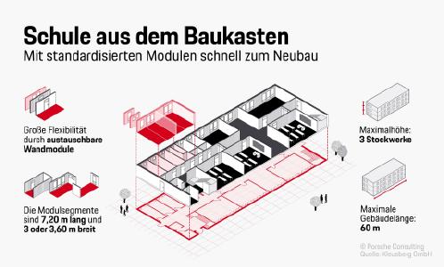 ble Bauweise zum Errichten von Büro- und Verwaltungsgebäuden, Infrastrukturen in oder an Fertigungshallen, Kindertagesstätten und Schulen. Aber auch Dienstleistungsunternehmen führen Bauprojekte immer häufiger mit dieser modularen Bauweise durch. So entstehen branchenübergreifend Projekte in Rekordzeit. Modulgebäude können durch ihre Flexibilität sowohl dauerhaft als auch temporär genutzt werden. Die Möglichkeit der Um- und Weiternutzung als besonderer Nachhaltigkeitsaspekt macht hier den Unterschied. So wurde bei der Kita Bad Belzig (Brandenburg) die modulare Erweiterbarkeit in die Projektierung miteinbezogen.