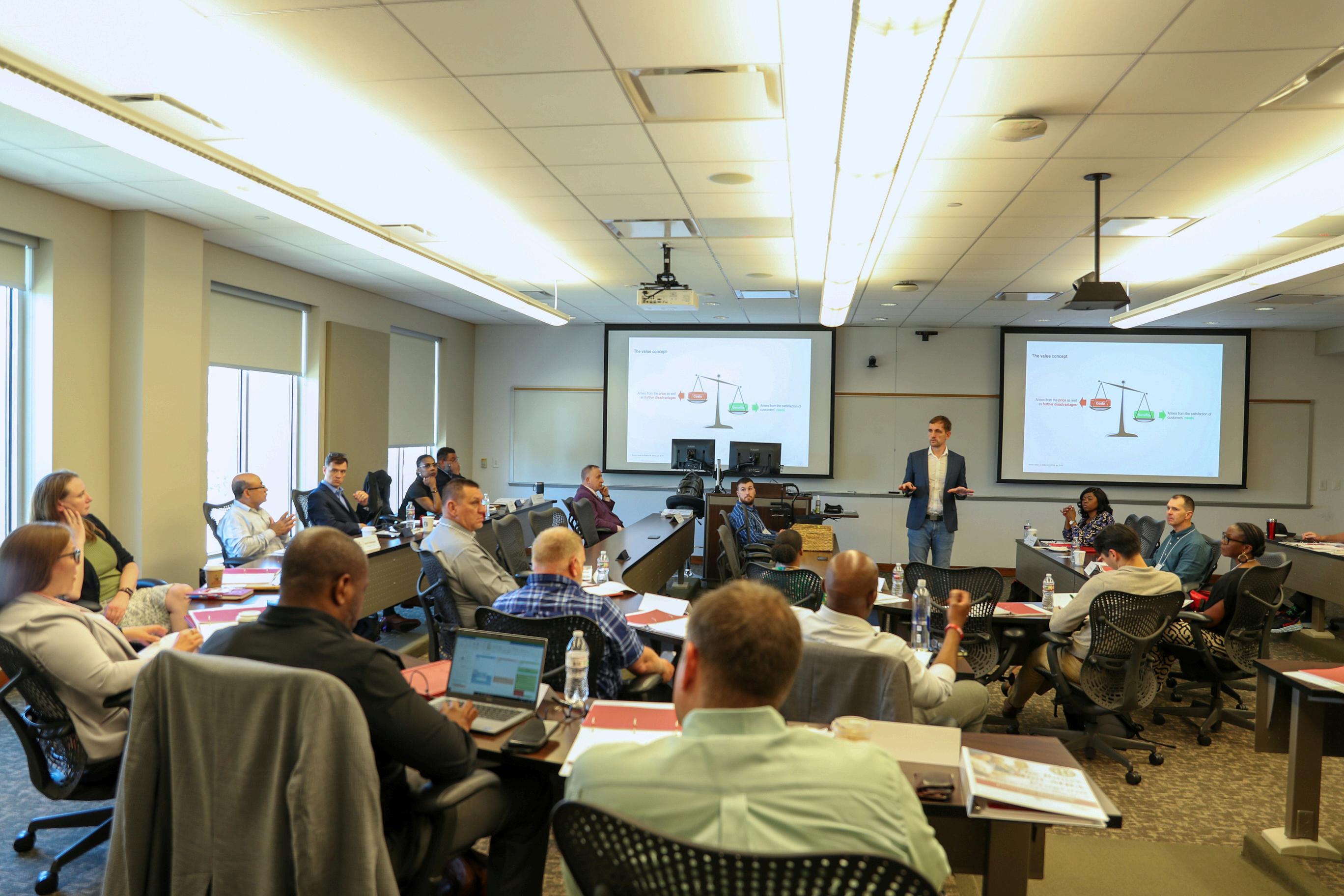 You will choose the subject matter, class content, length of classes, and location for the delivery program. The faculty leading your custom program are experts and leaders in their field who will incorporate your organization’s mission, vision, strategy, and tactics into engaging class lectures and discussions.