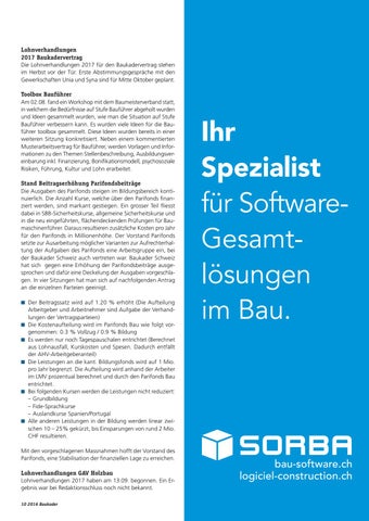 Lohnverhandlungen 2017 haben am 13.09. begonnen. Ein Ergebnis war bei Redaktionsschluss noch nicht bekannt. 10 2016 Baukader
