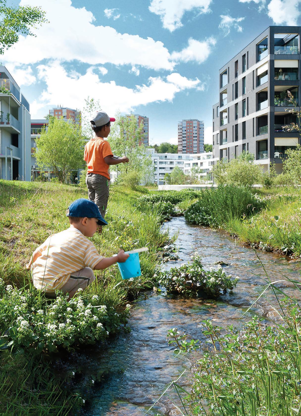 Stoccolma», spiega Frédéric Bachmann, responsabile dell’unità dell’Ufficio dell’acqua del Cantone di Ginevra e fautore dell’approccio Eau en Ville. Grazie a questo sistema, l’acqua piovana viene convogliata attraverso griglie, collettori o canalizzazioni e poi in fosse piantumate pressoché vuote, che agiscono un po’ come bacini di stoccaggio. Trattengono l’acqua e la mettono a disposizione della vegetazione e del suolo. Ma altrove, il terreno può essere semplicemente scarificato e risistemato e la superficie interessata riceve l’acqua che vi cade sopra. «In questo caso assistiamo a un processo idrologico del tutto naturale, con infiltrazione, dilavamento o evaporazione dell’acqua», spiega lo specialista. A Ginevra, il progetto Eau en Ville è stato lanciato nella primavera del 2021, per