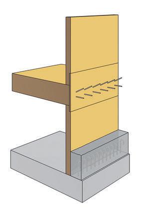 Représentation en 2D et 3D du noyau de la cage d’escalier bétonné ultérieurement: le nombre de moyens de fixation nécessaires et l’épaisseur du mur sont réduits. du mur en béton peuvent être réduits grâce à ce procédé.