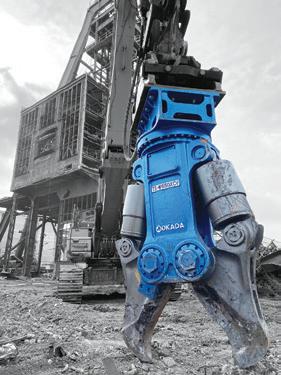 MB Crusher’s new MB-P and MB-PT demolition pulverizers for excavators, backhoe loaders, and skid-steer loaders from 1.5 to 25 tons are built for primary and secondary crushing with 360-degree continuous hydraulic rotation that allows for the precise, manoeuvrable positioning of the attachment. Five models are available. The attachments come in two versions and can be outfitted with a single-cylinder or double-cylinder depending on the power needed. Both versions were installed on different machines and tested by contractors while keeping the weight-to-power ratio in an optimal range. The design is adapted to the hydraulics of mid-size machines to ensure an even performance when crushing reinforced concrete.
