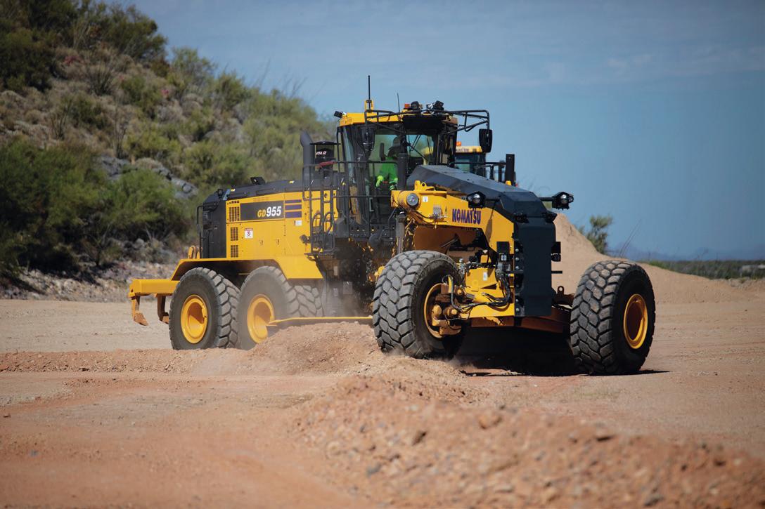 BIG NEW KOMATSU GRADER DESIGNED FOR HAUL ROAD WORK