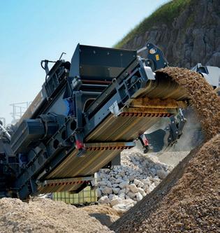 A vibrating feeder has a prescreen of 1,200 x 920 mm to optimize crushing results and minimize wear. An asymmetric opening facilitates longer material turning into the 770 x 960 mm inlet. A high inertia rotor with a diameter of 1,100 mm and width of 920 mm produces high-quality end products with low wear.