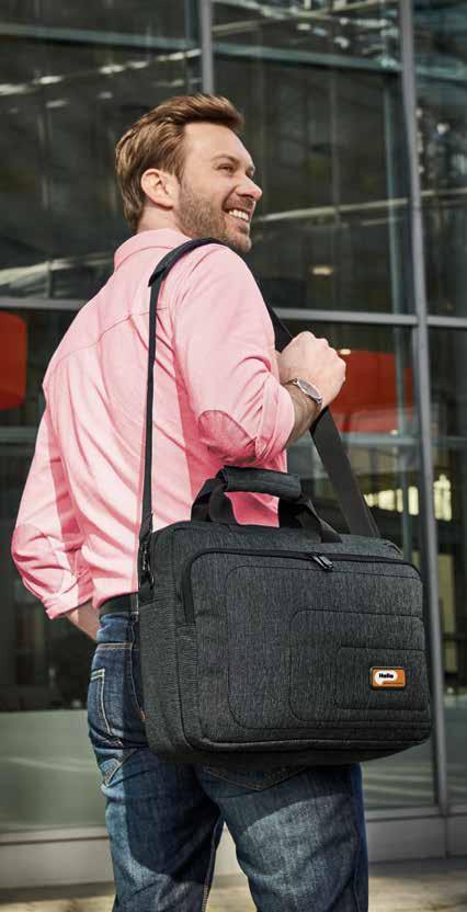Bags with added value. Well planned and therefore added comfort and durabilitywhether thanks to shoulder pads, mobile phone compartments, trolley flap, extra handles or other little features.