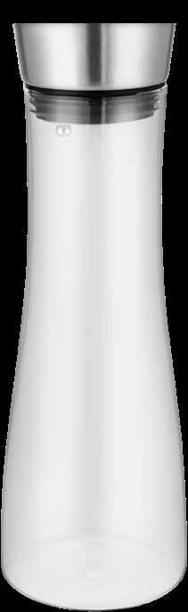 DE Elegante Glaskaraffe, wertig verarbeitet mit schönem Ausgießer aus Silikon und Stahl. IT Elegante caraffa in vetro, lavorata con un prezioso beccuccio in silicone e acciaio. Info 1,1l Fassungsvermögen, Patentausgießer, VPE 12. Inclusive Designkarton Material Glas/Edelstahl Size (mm) 98x98x292 Print L6 XL 40x20 / T9 40x30 / L8XL 55x25 133-00.000 transparent