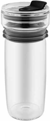 Questo è indispensabile nell'utilizzo e combinazione di materiali riciclabili, in acciaio ed in vetro borosilicato, ovvero l'obiettivo è quello di creare la connessione ottimale in termini di funzionamento e di design per mezzo di un coperchio a tenuta stagna - che viene utilizzato sia sulla tazza in metallo che sulla tazza di vetro - per garantire un elevato livello di praticabilità.