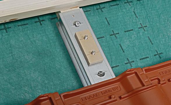 Ein besonderes Augenmerk liegt bei BRAAS auf der sicheren und fachgerechten Anbindung von Photovoltaikanlagen an das Dach. Die PV Aufdach-Befestigung trägt dazu bei, dass konsequent der Bruch von Dachsteinen oder Dachziegeln vermieden wird. Die technisch sichere Lösung zur Montage der Halteträger von Photovoltaikanlagen und Solarkollektoren ist die BRAAS Modulstütze. Die Modulstütze kann bei fast allen BRAAS Dachpfannen eingesetzt werden (außer Saphir und Opal Turmbiber). Je nach Modell besteht die Modulstütze aus einer ganzen oder halben Pfanne.
