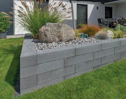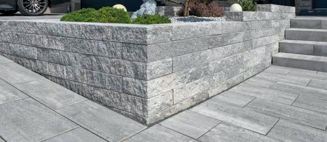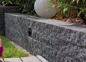 Extralange Mauersteine und die natürliche CRUSH®-Oberfläche machen dieses Mauersystem so besonders. Ergänzt wird das Sortiment um Zubehör für Licht oder Pflanzen. Das System umfasst Mauersteine 1/1 und 1/2, Long-Mauersteine, Long-Abschlussstein und zwei LongEinsatzsteine für Leuchtelemente. Farben: Anthrazit-Weiß meliert glatt, Grau-Anthrazit meliert glatt, Crème-Beige meliert glatt, Silber-Anthrazit CRUSH®.