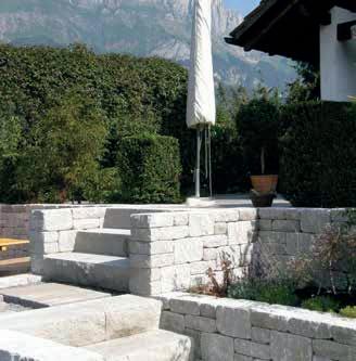 Das charakteristische Sandsteinflair des quarzhaltigen Betons schafft eine zeitlose Atmosphäre traditioneller Gartenkultur. Das vielseitige Mauerprogramm eröffnet unzählige Möglichkeiten für die Gestaltung von Gartenmauern, Treppenaufgängen oder eleganten Terrassenflächen.