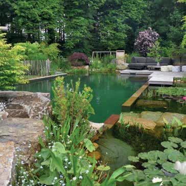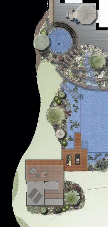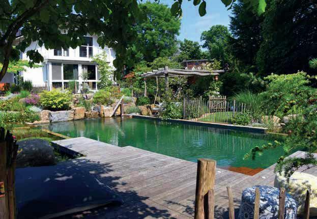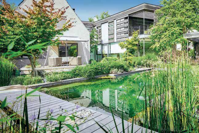 Ein pflegeleichter Garten ohne Rasenflächen, der modernen Lifestyle mit einem Mehrwert für nutzbringende Insekten und Vögel verknüpft – das war die Vorgabe des Kunden. Garden Landscape Design GmbH & Co. KG kreierte einen bienenfreundlichen Lounge-Garten, der mit großzügigen Terrassen, Bio-Pool mit Außendusche, Höhenunterschieden und Beleuchtung alle Wünsche erfüllt.