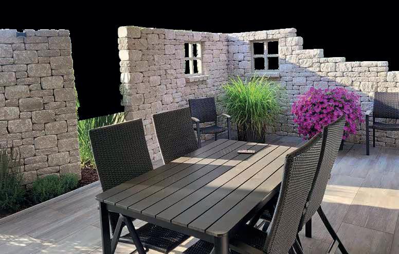 Die zum Pflaster passende Gartenmauer besticht ebenfalls durch eine spannende Lebhaftigkeit und rundet das System stimmig ab. So sind Ihnen keine Grenzen in der kreativen Gartengestaltung gesetzt!