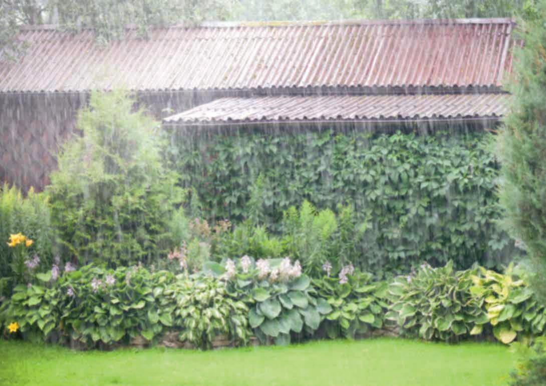 Regenwasser sollte im Idealfall in Zisternen gesammelt werden oder direkt im Boden Pflanzen versorgen und das Grundwasser auffüllen. Beim Verlegen von Terrassenplatten, die es bereits mit Klimafunktion gibt, sind wasserdurchlässige Fugen sinnvoll. Starkregen lässt sich über Ableitungssysteme mit Schlitzrinnen oder Punkteinläufen ableiten.