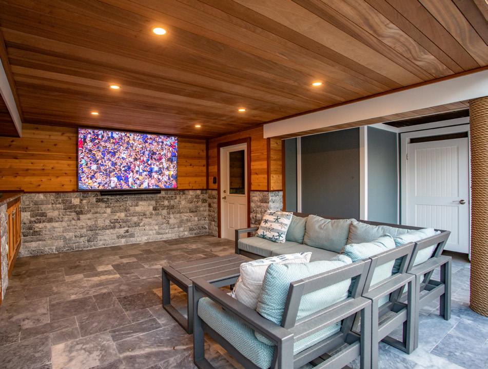 Outdoor kitchens and sitting bar counters along with outdoor furniture, dining tables and daybeds can define the function of these open-air rooms promoting congenial gatherings with family and friends. Accessory equipment including flat-screen televisions, ceiling fans, ping pong and pool tables and other gaming equipment can create an all-weather hub for both daylight and nighttime entertainment.