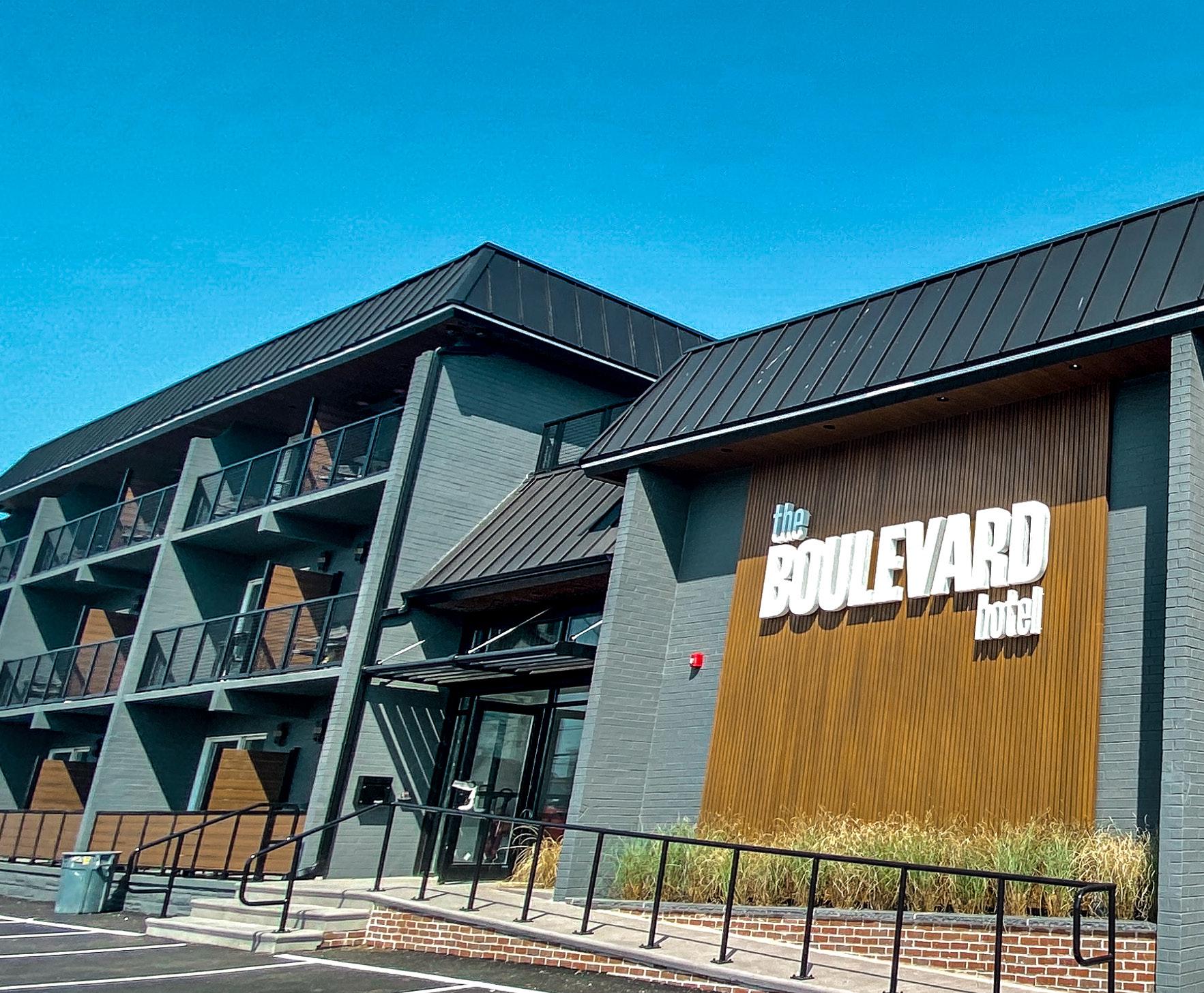 Driving south on Long Beach Island, a strikingly sleek, slate gray building catches your eye. Complimented by pops of warm wood and elements of vintage brick, it is nearly unrecognizable from what it once was. Now the most premier boutique hotel on Long Beach Island, The Boulevard Hotel has taken up residence within the walls of what was formerly the Mariner Inn. Following suit with her sister hotels, Hotel LBI and the Spray Beach Oceanfront Hotel, The Boulevard adopts a special piece of Long Beach Island history and elevates it into a desirable, contemporary retreat.