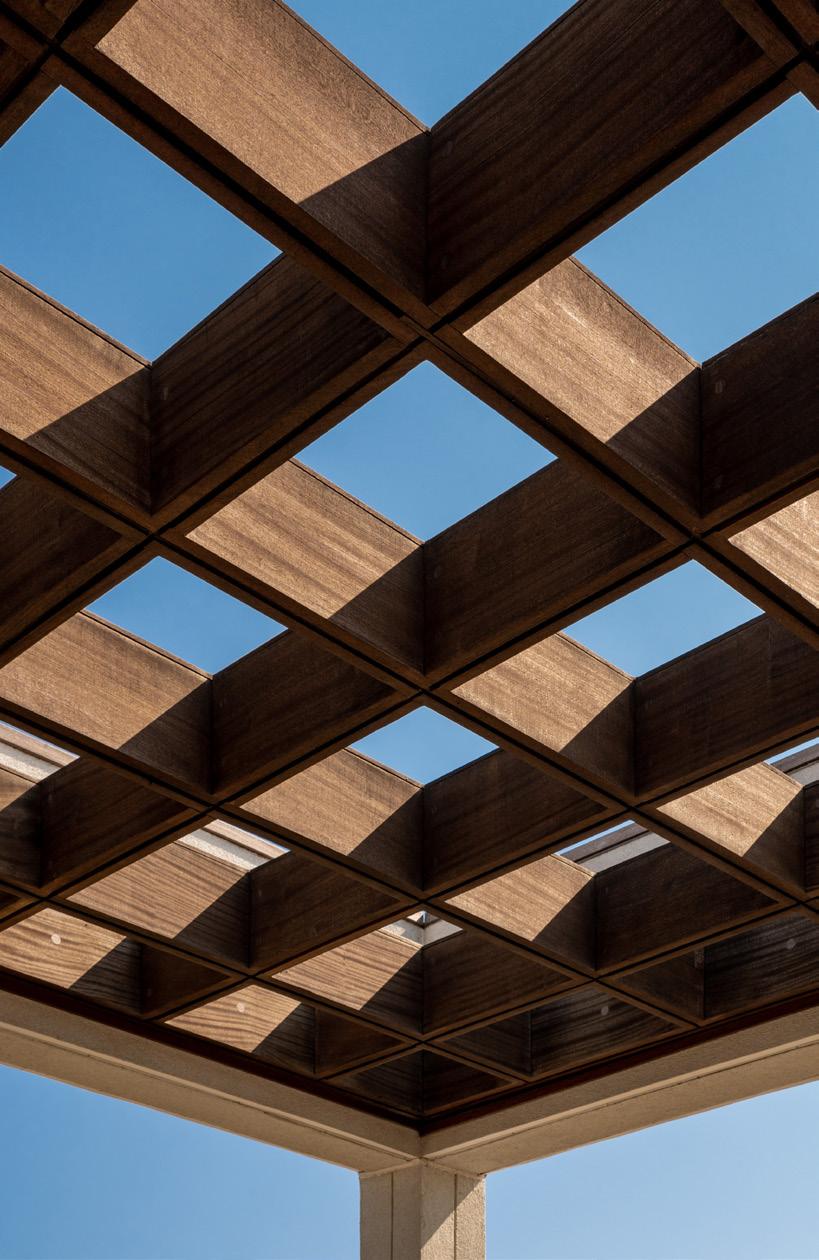 supports can transform dark, nondescript recesses into cozy living niches that encourage congregation, relaxation and entertainment. Hardwood ceiling accents and natural stone tiled walls and floors define the style and ambiance of the al fresco living environment. Marine grade roping or natural wood accents can be applied to structural pilings to enhance or conceal their appearance.