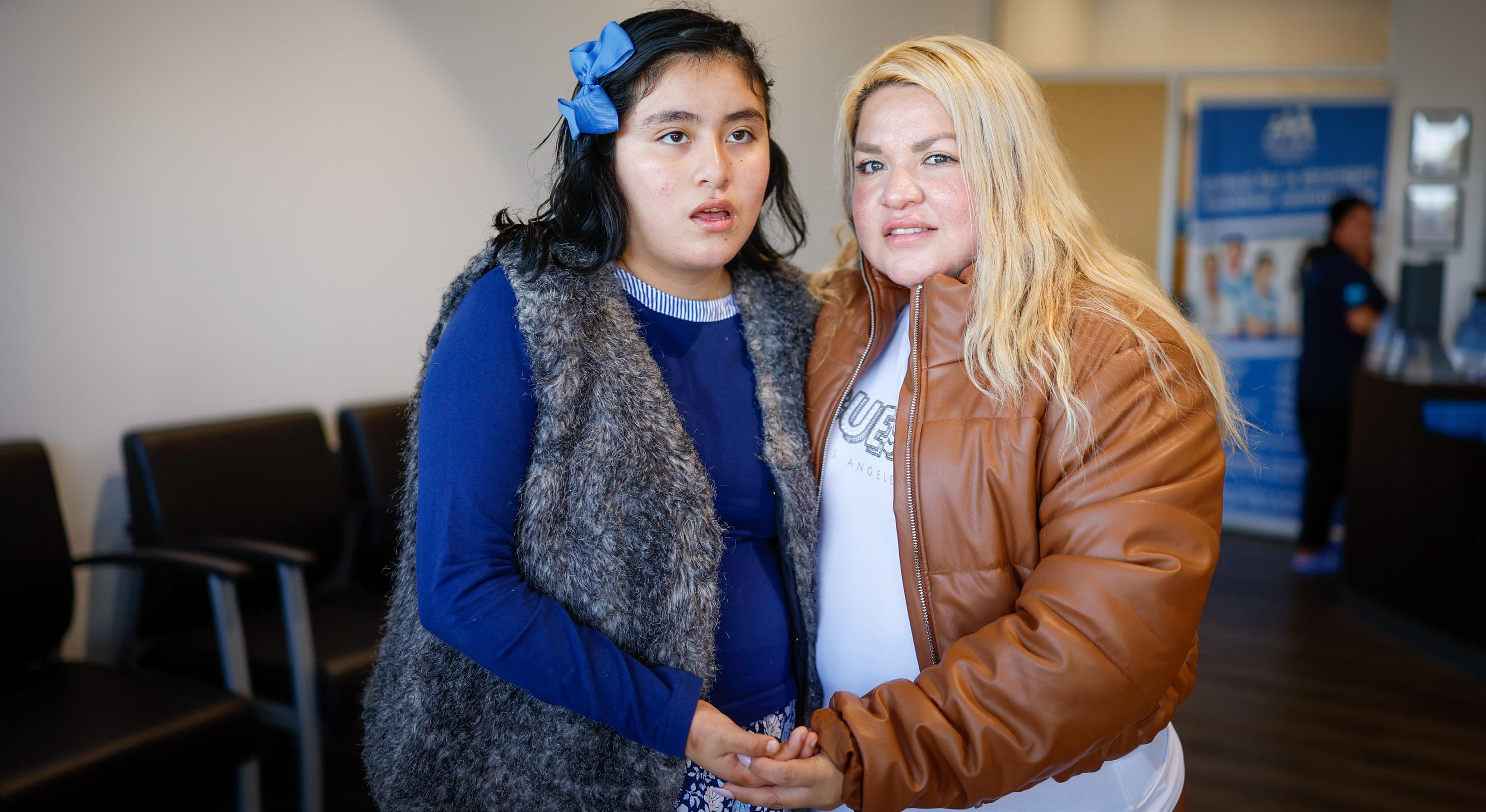 Kathia, right, who asked to withhold her full name to protect her family’s privacy, with her daughter Briana, 12, at Bay Area Community Health in San Jose, where they receive free and affordable medical care for Briana’s rare neurological disorder.